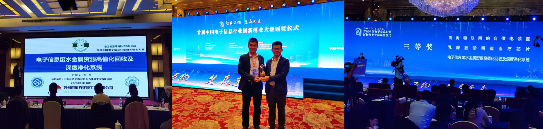 、河海大学以及苏州市东方环境工程有限公司,通过优势互补和协同创新,形成了从基础理论研究-技术装备开发-工程实践应用的完整创新链,实现了“产学研用”的深度交叉和有机融合。获奖项目针对电子信息行业废水特点,秉承“分质处理-短流程回用-有价组分回收”的创新理念,致力于电子信息废水中有价金属离子高值化回收及深度净化,开发了高安全选择性沉铜技术、有机螯合高效沉镍技术和企业园区环境管家系统等资源化环境防治技术装备及系统,为电子信息企业和高新园区提供废水资源化处理技术装备、环保解决方案及运营管理服务,突破电子信息企业、高新园区发展的环境瓶颈,助力5G新时代电子信息企业、行业及高新园区的绿色健康可持续发展,具有重要的应用前景。