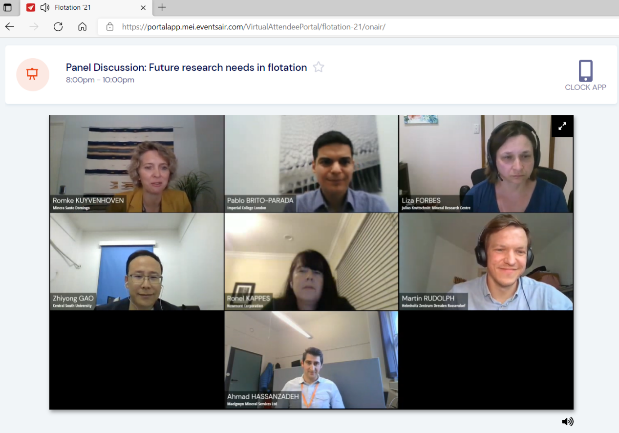 11月8日至12日,第十届国际浮选大会(Flotation ‘21)顺利召开。由于新冠疫情影响,来自29个国家的267名代表,通过线上形式参加了为期五天的会议。大会设有12个分论坛,来自22个国家的代表共作了105个学术报告(其中两个Keynote),涵盖浮选气泡与泡沫、硫化矿浮选药剂、铂族金属(PGM)浮选药剂、细粒浮选、浮选模型与模拟、浮选过程控制与装备、浮选流程与生产实践等多个浮选领域。bwin亚洲