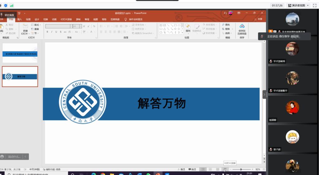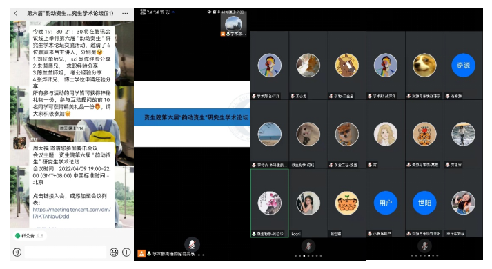 本次论坛围绕四个专题——“SCI论文写作”、“考公备考”、“职业规划”、“博士学位申请”展开,分别邀请刘征华师兄分享论文写作技巧,朱渊师兄分享职业规划和求职经历、陈兰兰师姐分享在考公中如何科学备考、时间规划以及岗位选择的经验、张烨师兄分享自己的申博历程。由于疫情原因,此次会议采用线上方式。
