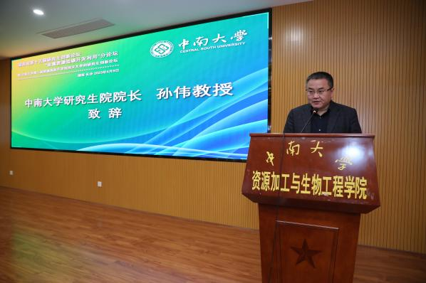 研究生院院长孙伟致开幕辞,他首先对参加本次论坛的来自全国不同高校和科研单位的同学表示热烈的欢迎。他强调,习近平总书记在党的二十大上的报告擘画了全面建成社会主义现代化强国的宏伟蓝图,对教育、科技、人才工作进行一体化部署,研究生教育是科技第一生产力、人才第一资源、创新第一动力的最关键“结合部”,创新能力培养是其核心指标,培养拔尖创新人才是其根本任务。他希望,通过本次论坛,全国各地的同学们能在热烈的对话与讨论中享受金属资源低碳开发利用领域的最新科研成果,在学术的碰撞与交融中萌发出新的思路,进一步提升科研素养和创新能力,在新时代激烈的竞争下为自己争取“一席之地”。
