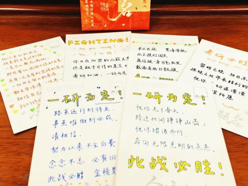 此外,为增强考生信心,学院为全体考研学子准备了寓意美好的暖心加油礼包,内含考试用具、果冻橙、旺仔牛奶和薯片等礼品,象征心想事成、好运相伴与温暖常在。同时,辅导员吴宗晟及学生干部为85名考研学子书写祝福卡,期盼2022级考研生途有梦,一战成